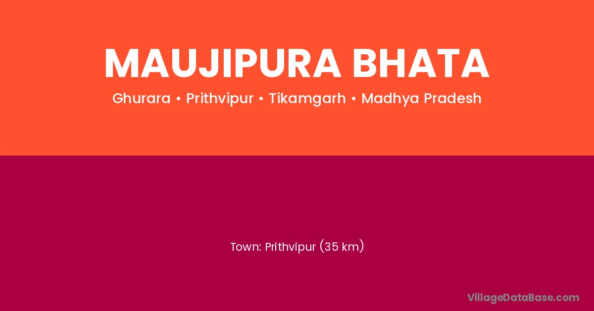 Prithvipur (35 km) is the nearest town to Maujipura Bhata village for major economic activities and is located approximately 35 km away.