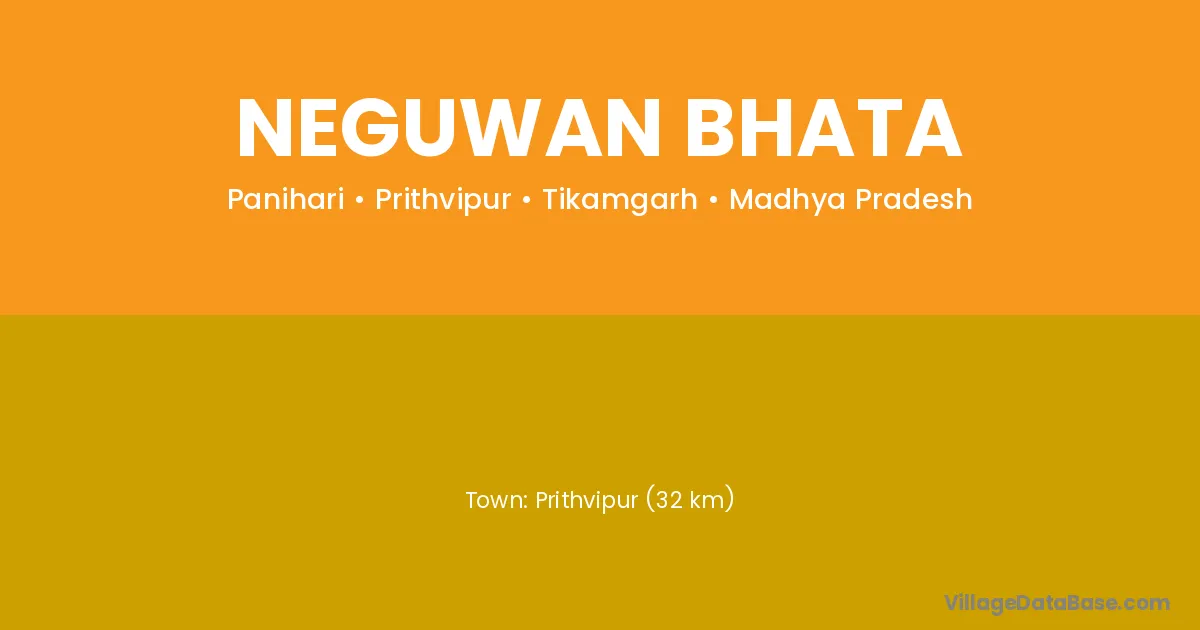 Prithvipur (32 km) is the nearest town to Neguwan Bhata village for major economic activities and is located approximately 32 km away.
