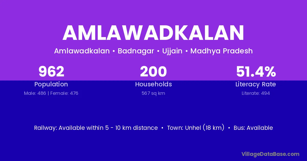 Amlawadkalan village has a total population of 962 people, of which 486 are males and 476 are females.