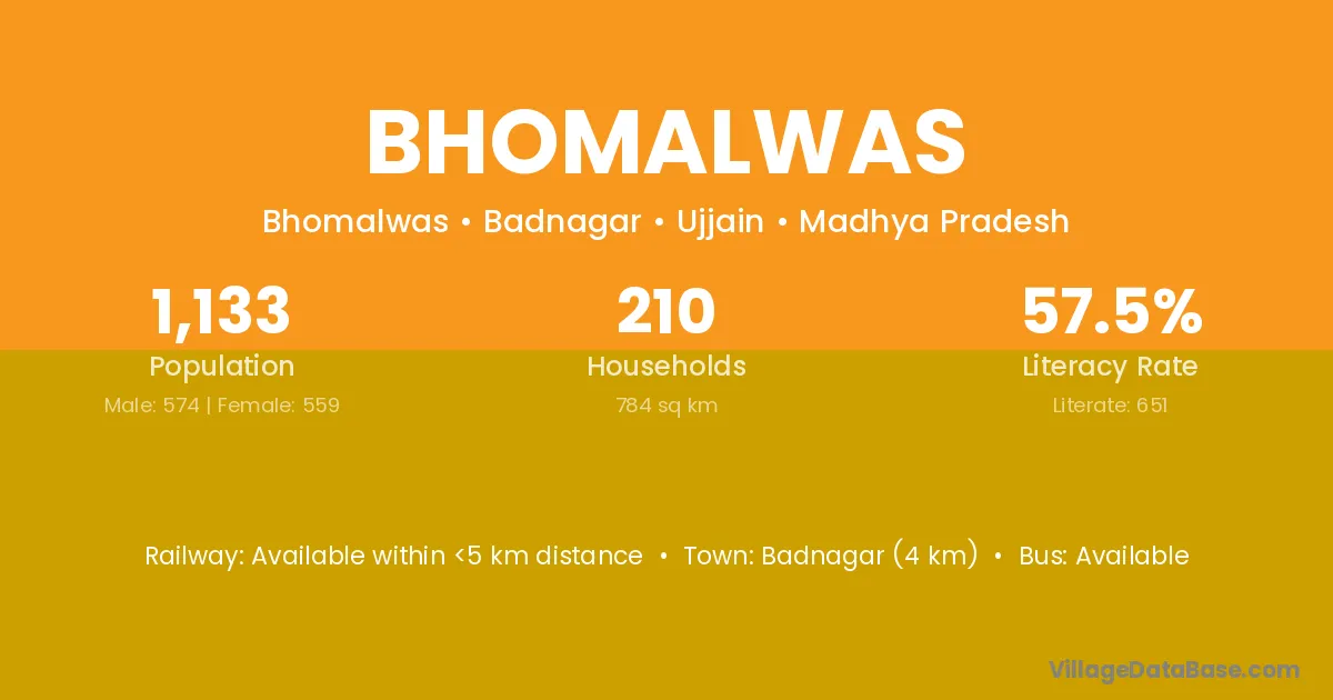 Badnagar (4 km) is the nearest town to Bhomalwas village for major economic activities and is located approximately 4 km away.