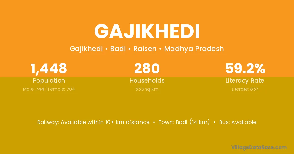 Badnagar (22 km) is the nearest town to Gajikhedi village for major economic activities and is located approximately 22 km away.