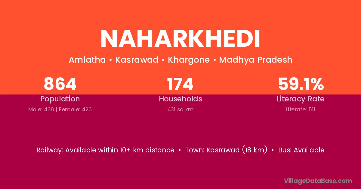 Ujjain (25 km) is the nearest town to Naharkhedi village for major economic activities and is located approximately 25 km away.