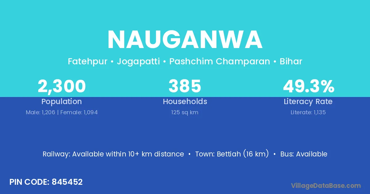 Badnagar (25 km) is the nearest town to Nauganwa village for major economic activities and is located approximately 25 km away.