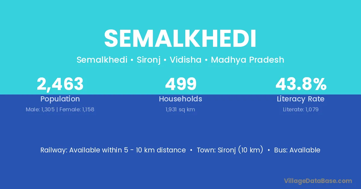 Badnagar (22 km) is the nearest town to Semalkhedi village for major economic activities and is located approximately 22 km away.