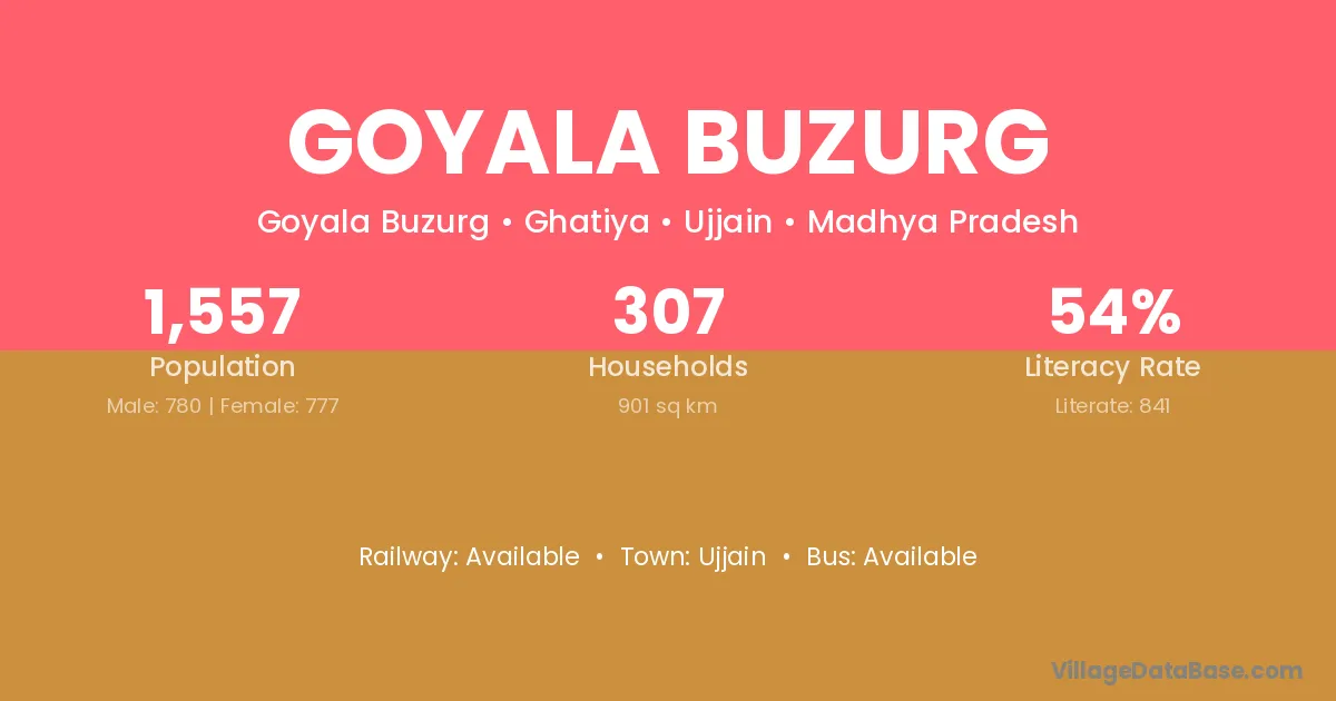 Goyala Buzurg village has a total population of 1,557 people, of which 780 are males and 777 are females.