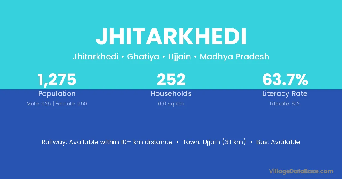 Ujjain (31 km) is the nearest town to Jhitarkhedi village for major economic activities and is located approximately 31 km away.