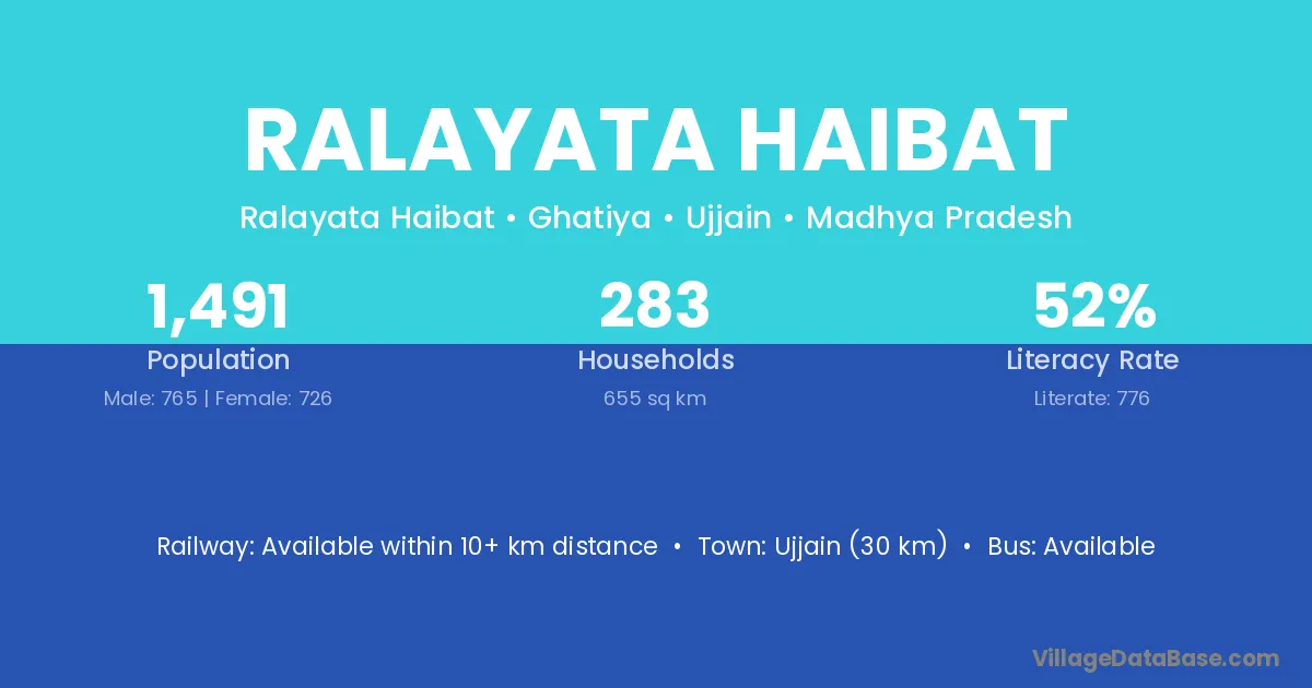 Ujjain (30 km) is the nearest town to Ralayata Haibat village for major economic activities and is located approximately 30 km away.