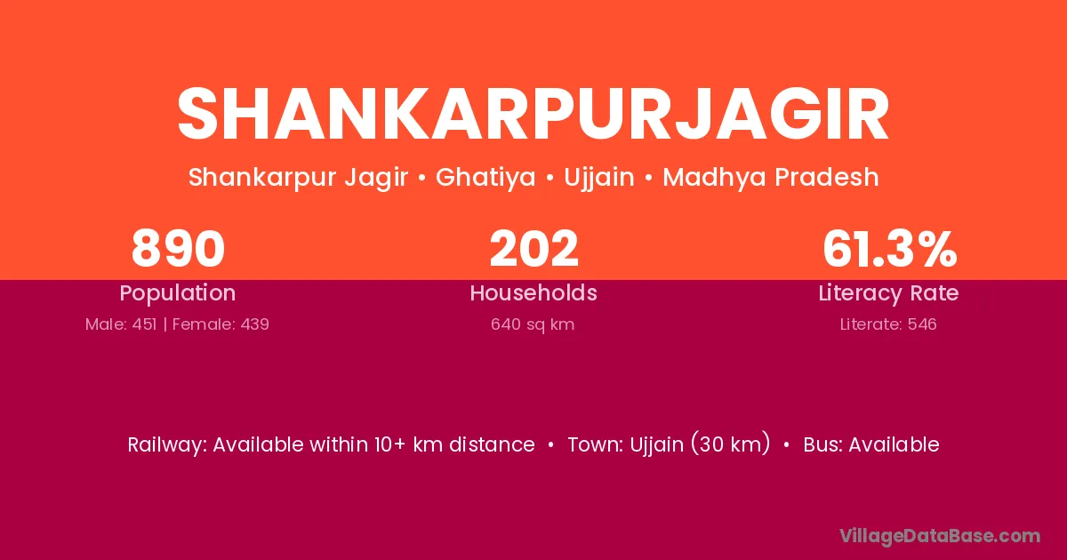 Shankarpurjagir village has a total population of 890 people, of which 451 are males and 439 are females.
