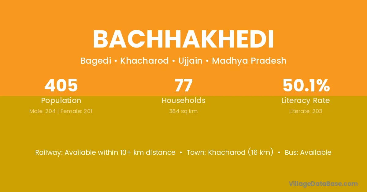 Bachhakhedi village has a total population of 405 people, of which 204 are males and 201 are females.