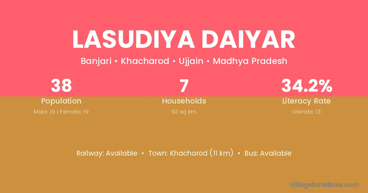 Lasudiya Daiyar village is located in the Khacharod Tehsil of the Ujjain district in Madhya Pradesh .