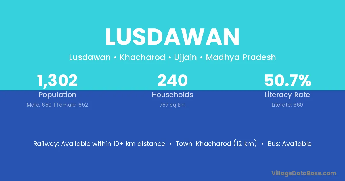 Lusdawan village is located in the Khacharod Tehsil of the Ujjain district in Madhya Pradesh .
