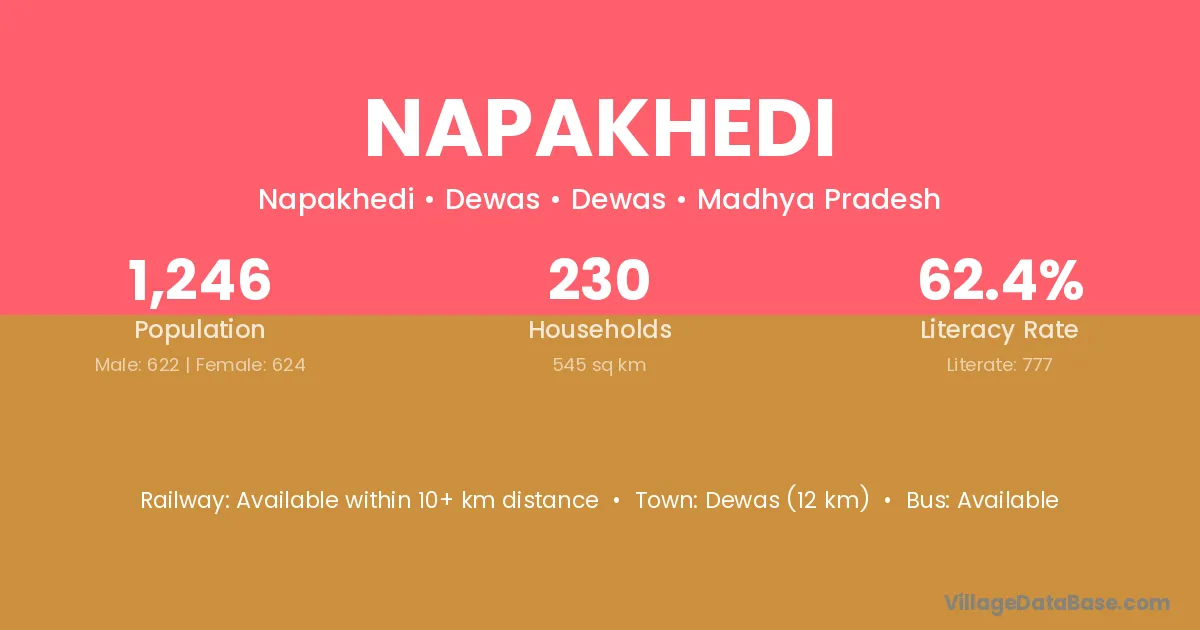 Khacharod (18 km) is the nearest town to Napakhedi village for major economic activities and is located approximately 18 km away.