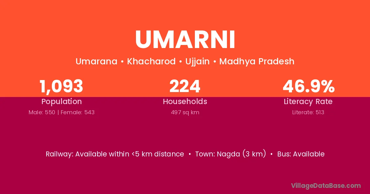 Nagda (3 km) is the nearest town to Umarni village for major economic activities and is located approximately 3 km away.