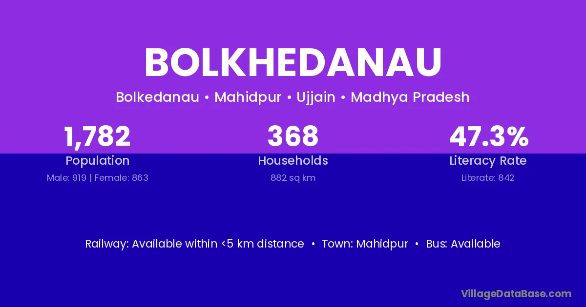 Mahidpur is the nearest town to Bolkhedanau village for major economic activities