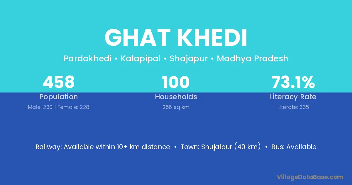 Mahidpur (20 km) is the nearest town to Ghat Khedi village for major economic activities and is located approximately 20 km away.