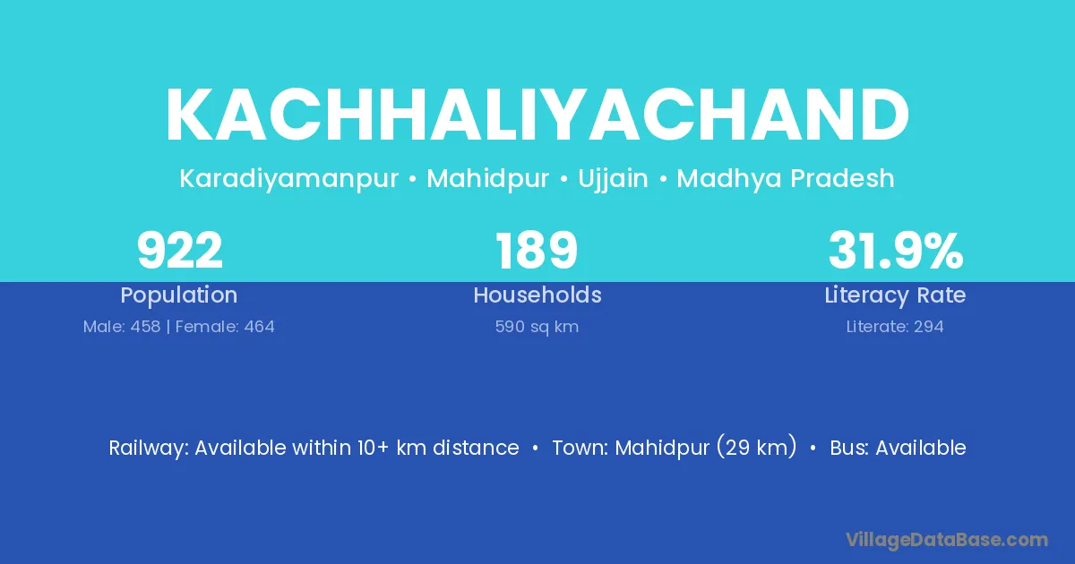 Mahidpur (29 km) is the nearest town to Kachhaliyachand village for major economic activities and is located approximately 29 km away.