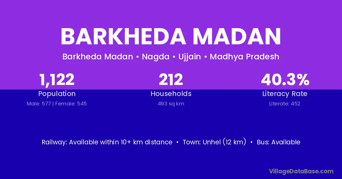 Barkheda Madan village has a total population of 1,122 people, of which 577 are males and 545 are females.