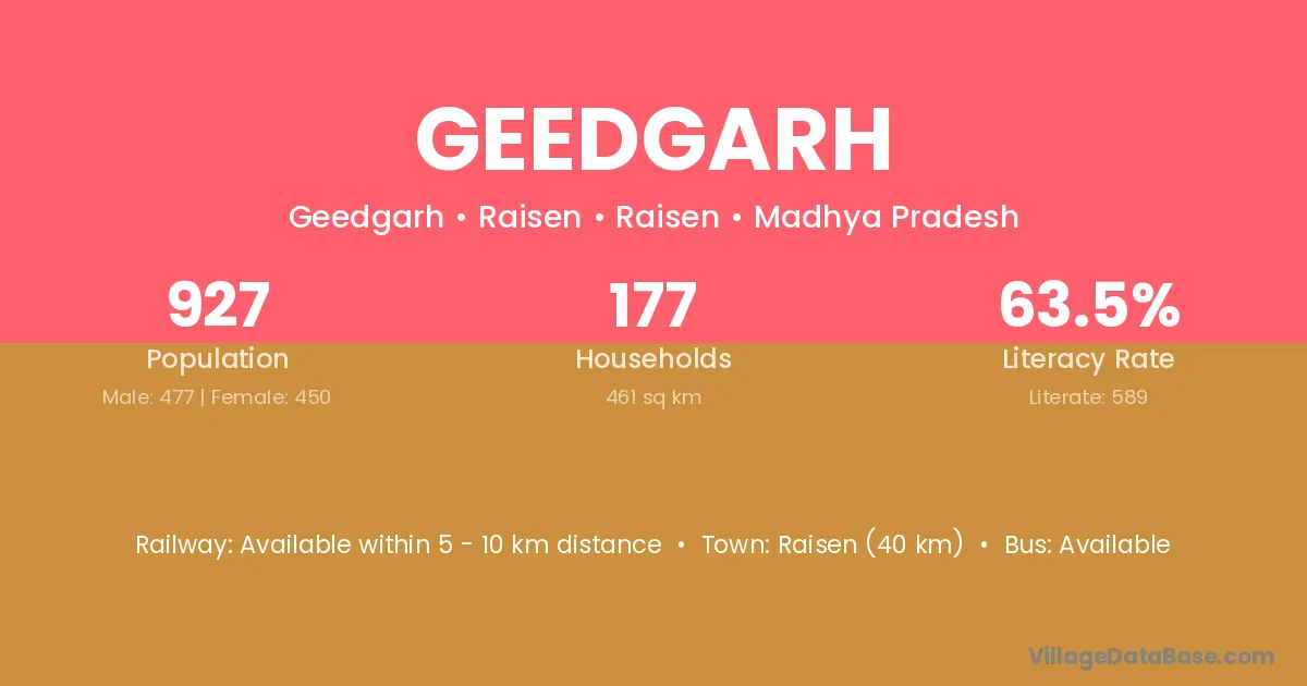 Nagda (4 km) is the nearest town to Geedgarh village for major economic activities and is located approximately 4 km away.