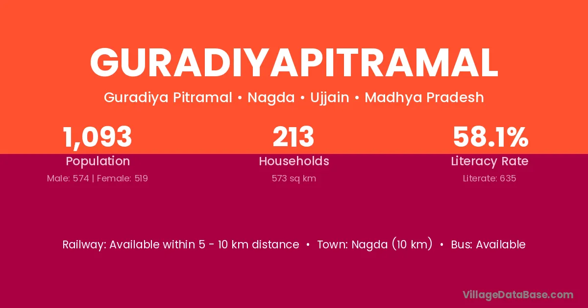Nagda (10 km) is the nearest town to Guradiyapitramal village for major economic activities and is located approximately 10 km away.