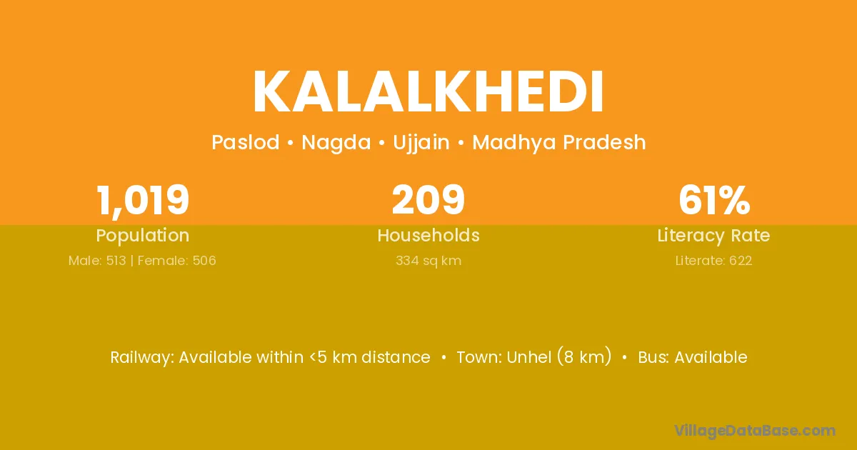 Kalalkhedi village has a total population of 1,019 people, of which 513 are males and 506 are females.