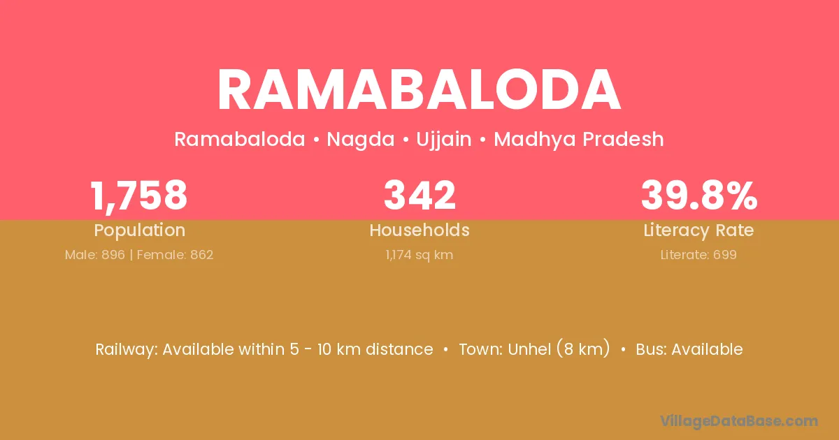 Ramabaloda village has a total population of 1,758 people, of which 896 are males and 862 are females.