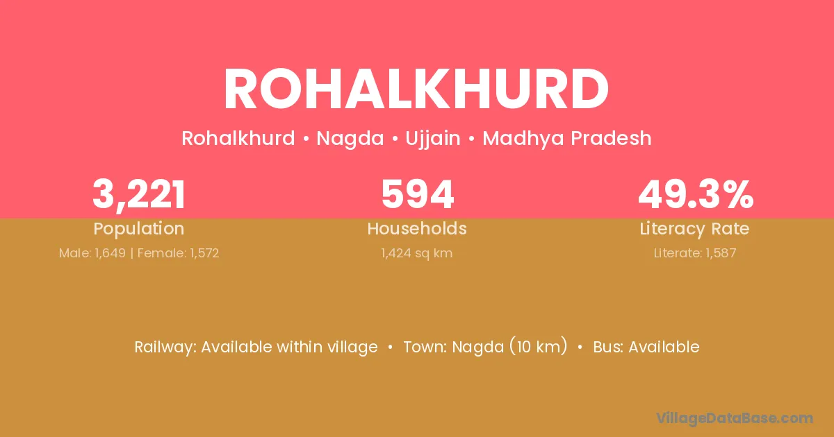 Nagda (10 km) is the nearest town to Rohalkhurd village for major economic activities and is located approximately 10 km away.