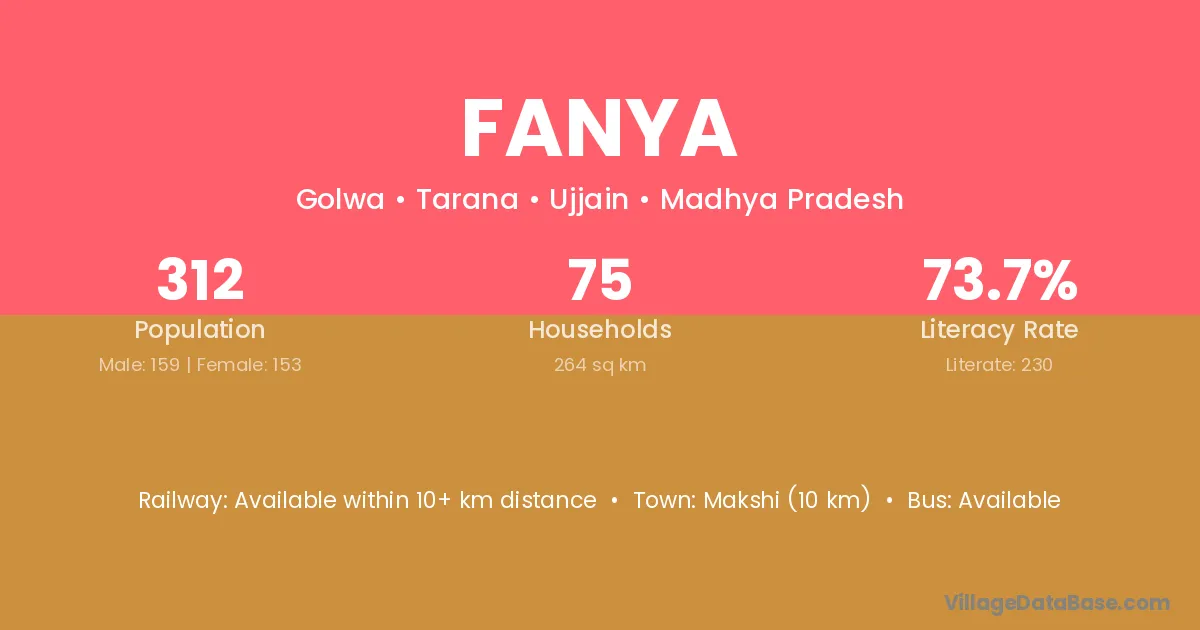Fanya village has a total population of 312 people, of which 159 are males and 153 are females.