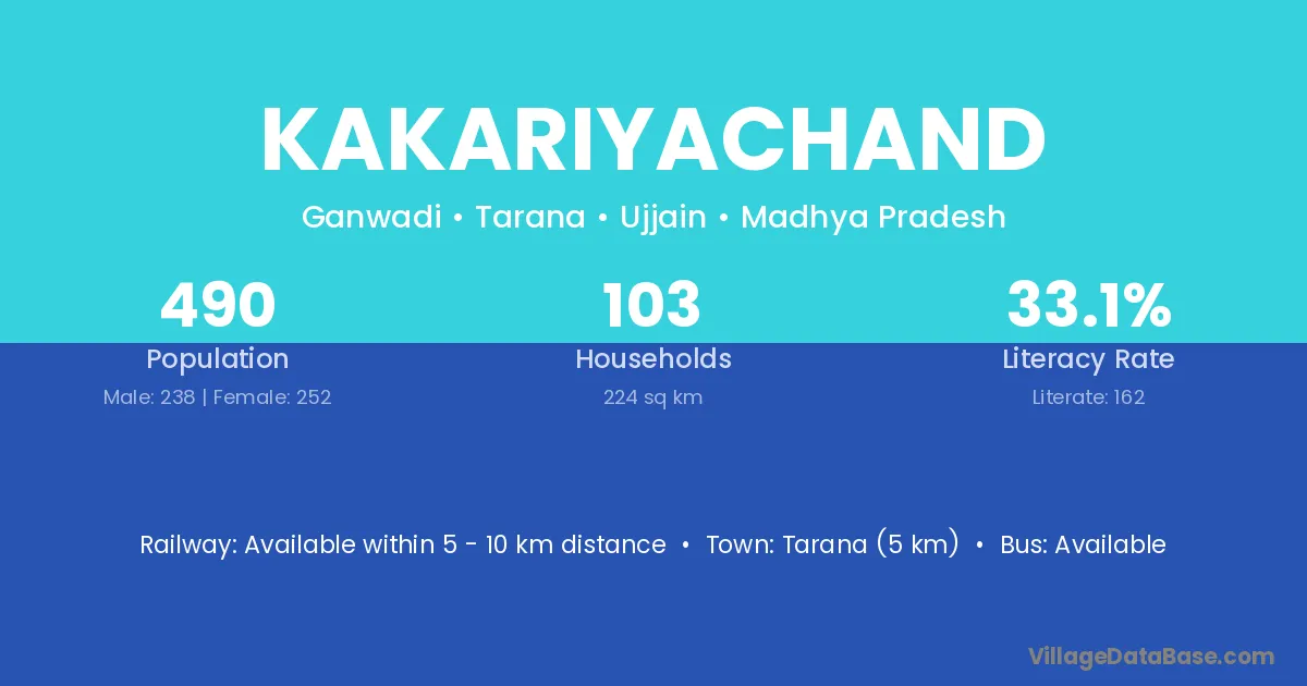 Tarana (5 km) is the nearest town to Kakariyachand village for major economic activities and is located approximately 5 km away.