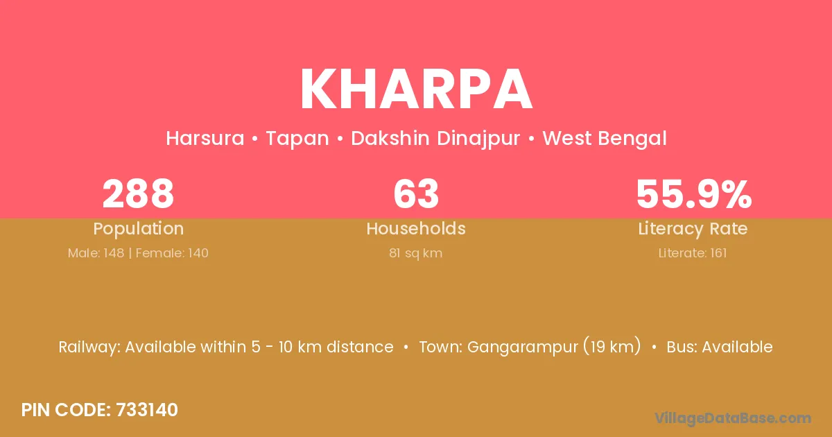 Tarana (8 km) is the nearest town to Kharpa village for major economic activities and is located approximately 8 km away.