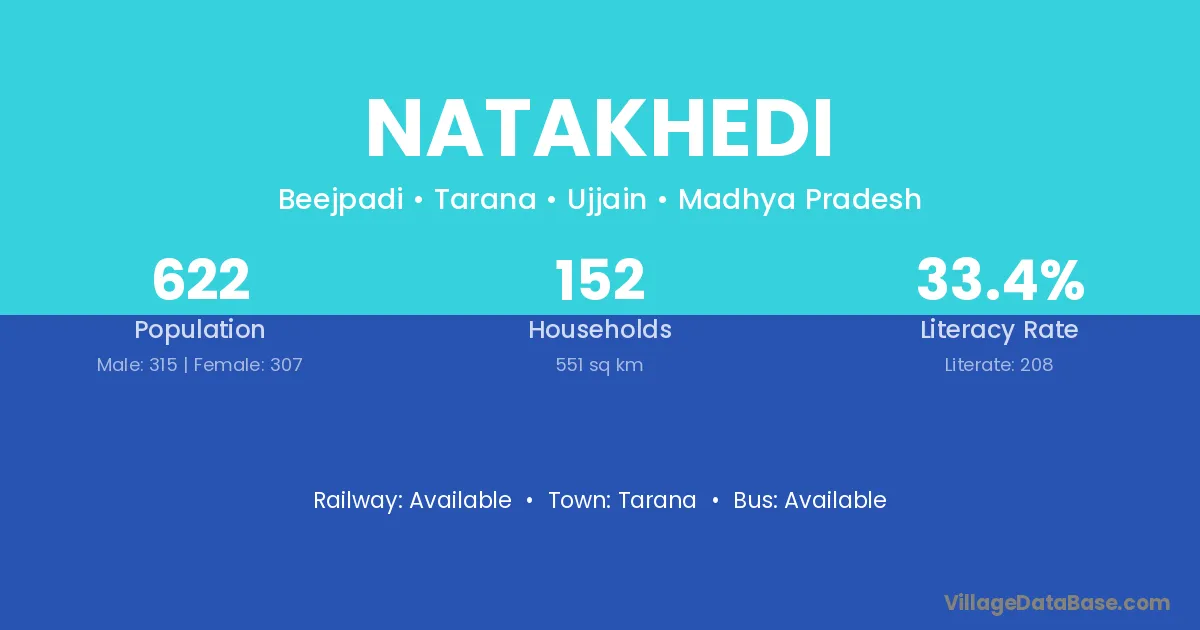 Natakhedi village has a total population of 622 people, of which 315 are males and 307 are females.