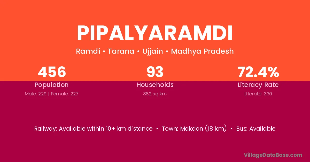 Pipalyaramdi village has a total population of 456 people, of which 229 are males and 227 are females.