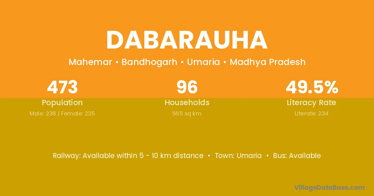 Dabarauha village has a total population of 473 people, of which 238 are males and 235 are females.