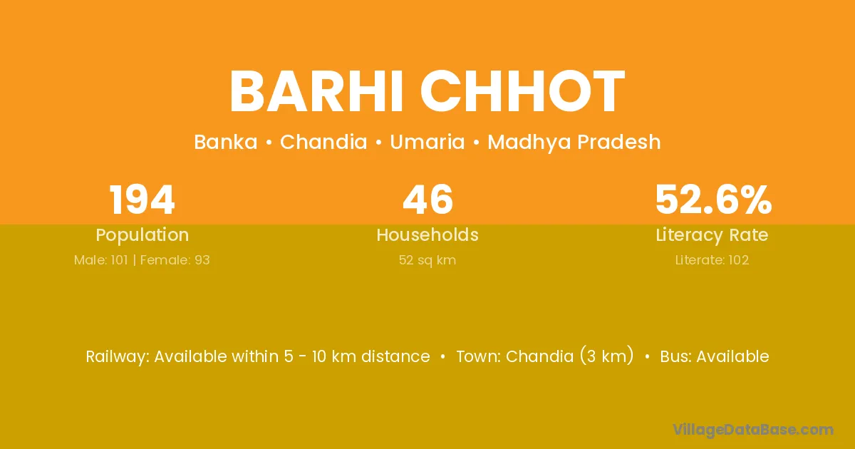 Barhi Chhot village has a total population of 194 people, of which 101 are males and 93 are females.