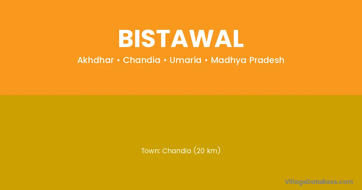 Chandia (20 km) is the nearest town to Bistawal village for major economic activities and is located approximately 20 km away.