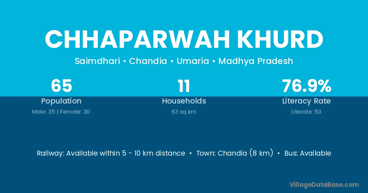 Chhaparwah Khurd village has a total population of 65 people, of which 35 are males and 30 are females.