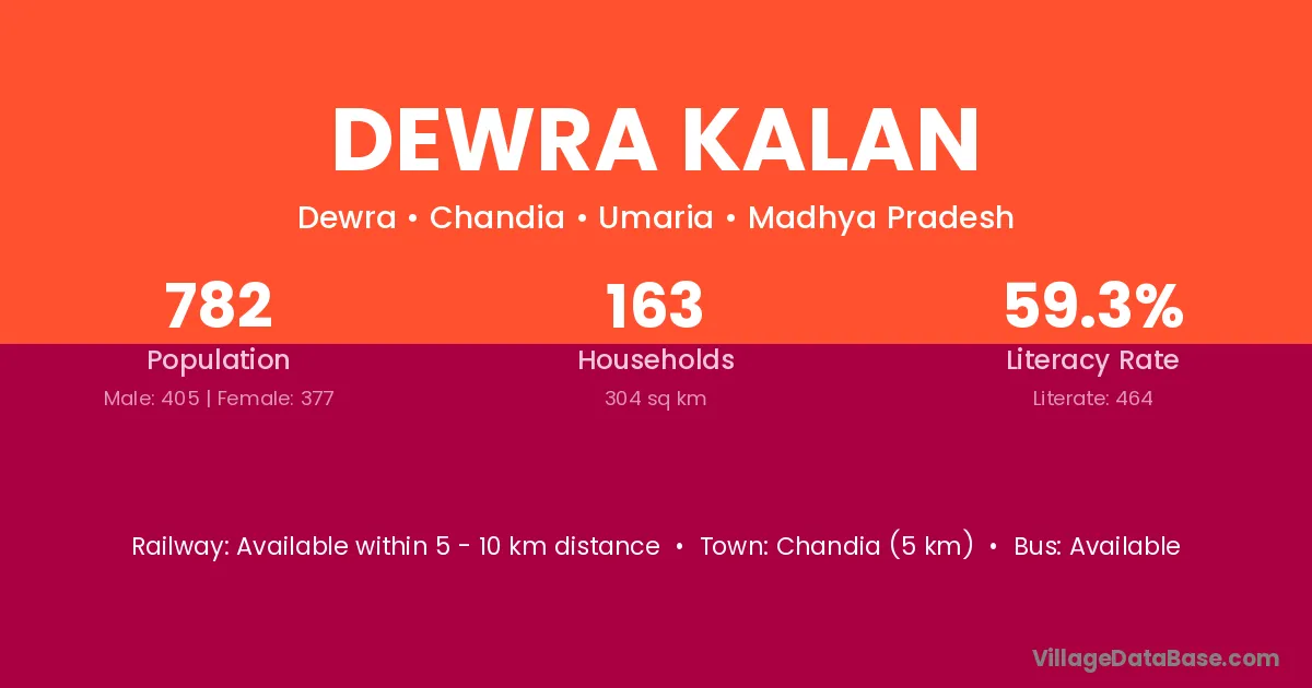 Chandia (5 km) is the nearest town to Dewra Kalan village for major economic activities and is located approximately 5 km away.