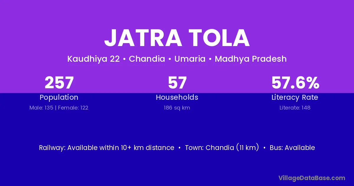 Jatra Tola village has a total population of 257 people, of which 135 are males and 122 are females.