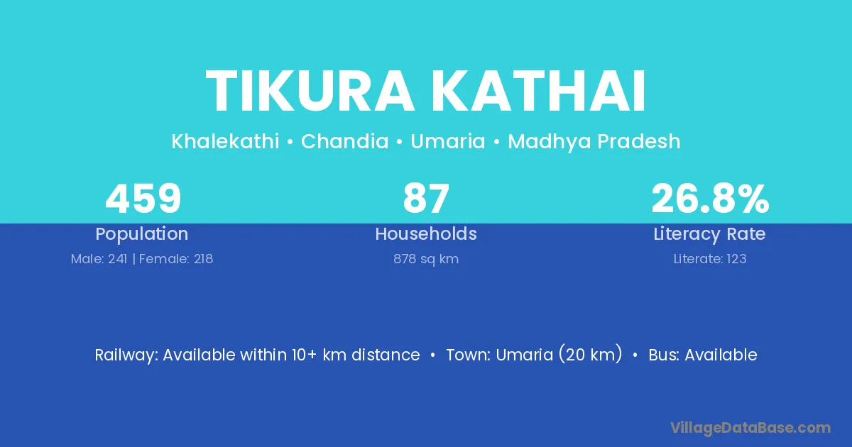 Tikura Kathai village has a total population of 459 people, of which 241 are males and 218 are females.
