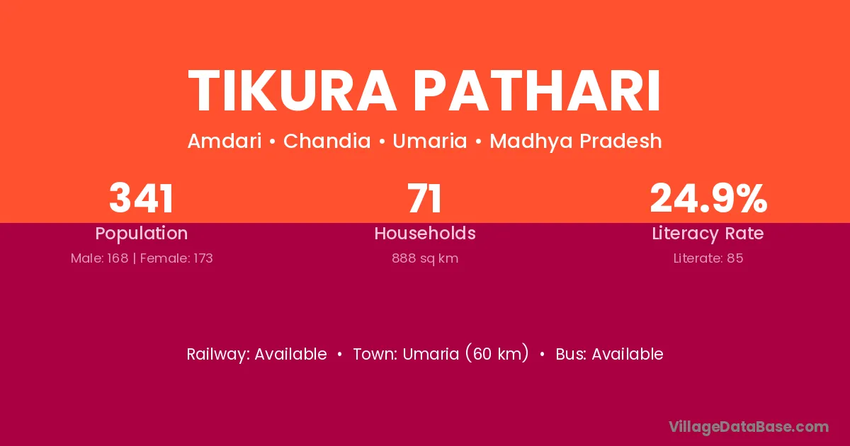 Tikura Pathari village has a total population of 341 people, of which 168 are males and 173 are females.