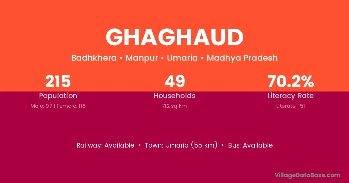 Umaria (55 km) is the nearest town to Ghaghaud village for major economic activities and is located approximately 55 km away.