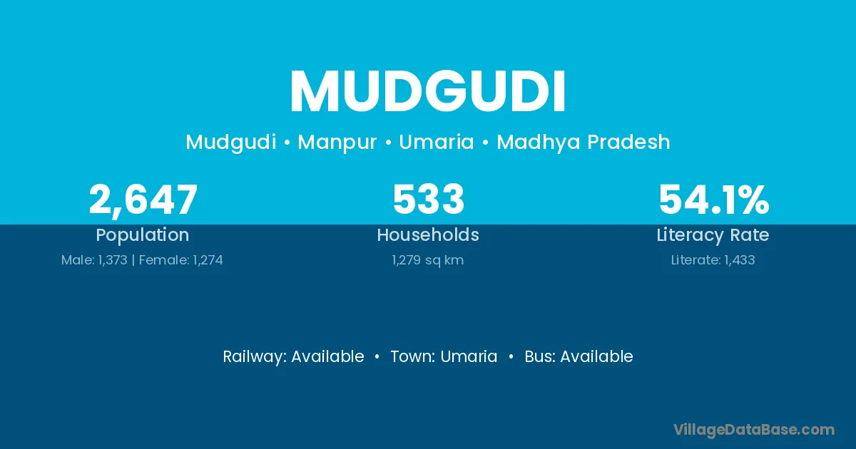 Mudgudi village has a total population of 2,647 people, of which 1,373 are males and 1,274 are females.