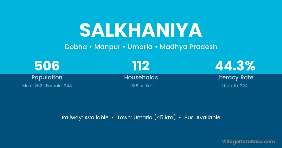Salkhaniya village has a total population of 506 people, of which 262 are males and 244 are females.