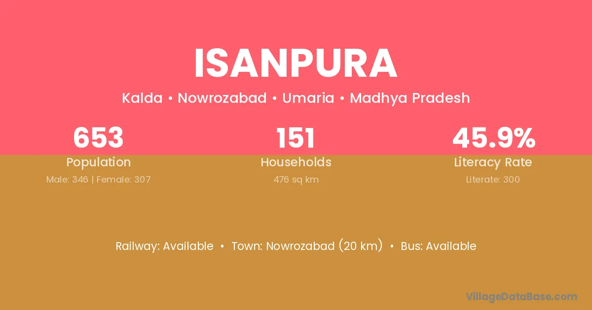 Nowrozabad (20 km) is the nearest town to Isanpura village for major economic activities and is located approximately 20 km away.