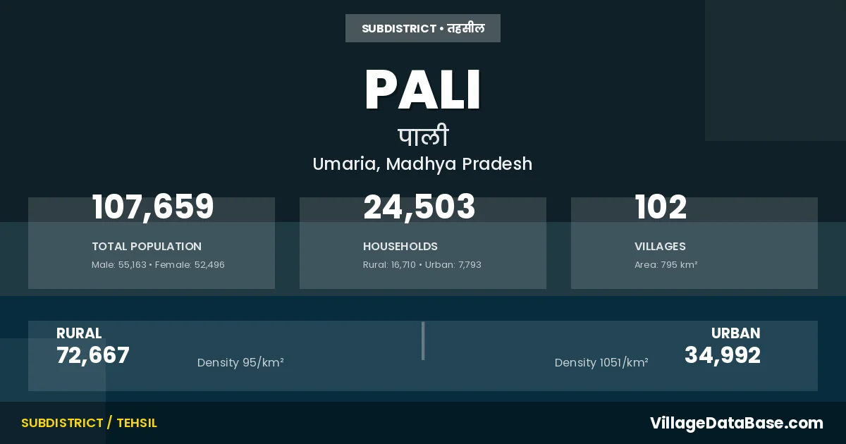Pali is a town and Tehsil in the Umaria district of the Madhya Pradesh. In India, a Tehsil is a subdivision of a district responsible for the administration and revenue collection of a specific area within the district. Tehsils play a crucial role in the local governance structure, contributing significantly to the development and administration of their communities.