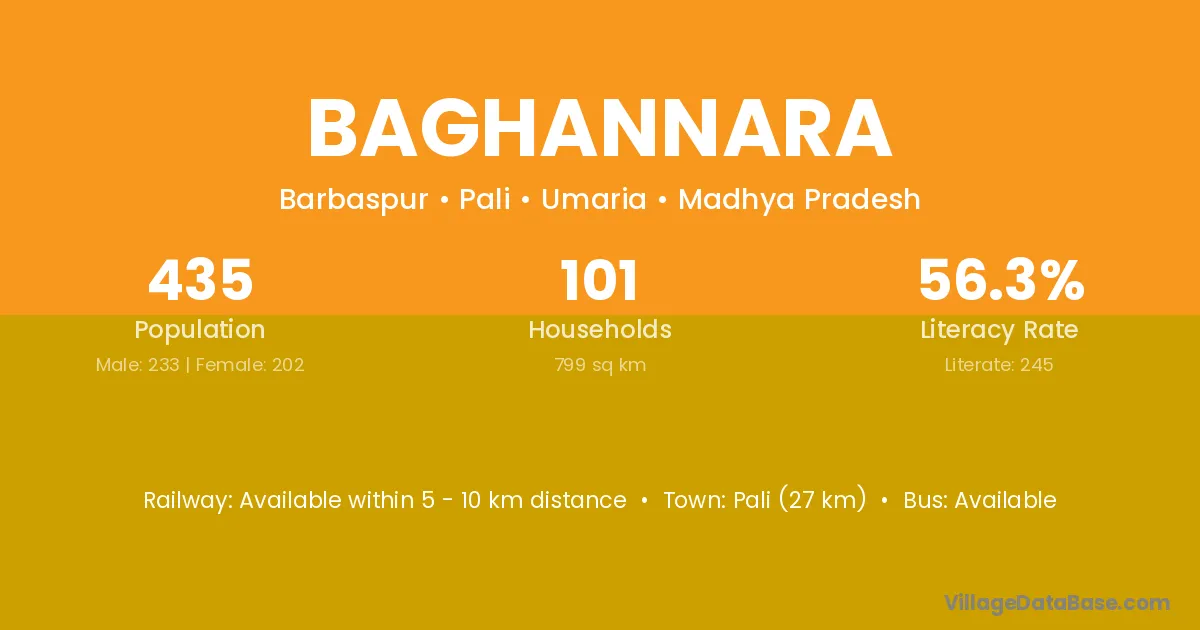 Baghannara village has a total population of 435 people, of which 233 are males and 202 are females.