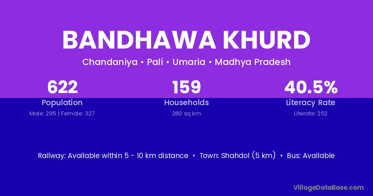 Shahdol (5 km) is the nearest town to Bandhawa Khurd village for major economic activities and is located approximately 5 km away.