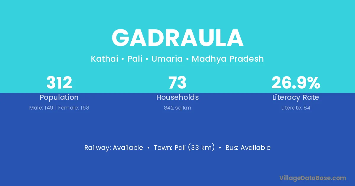 Pali (33 km) is the nearest town to Gadraula village for major economic activities and is located approximately 33 km away.