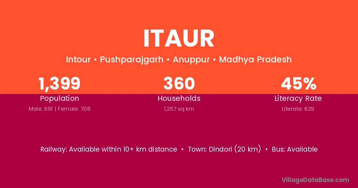 Shahdol (10 km) is the nearest town to Itaur village for major economic activities and is located approximately 10 km away.