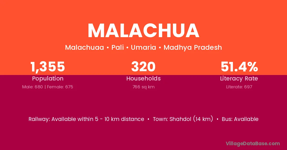 Shahdol (14 km) is the nearest town to Malachua village for major economic activities and is located approximately 14 km away.