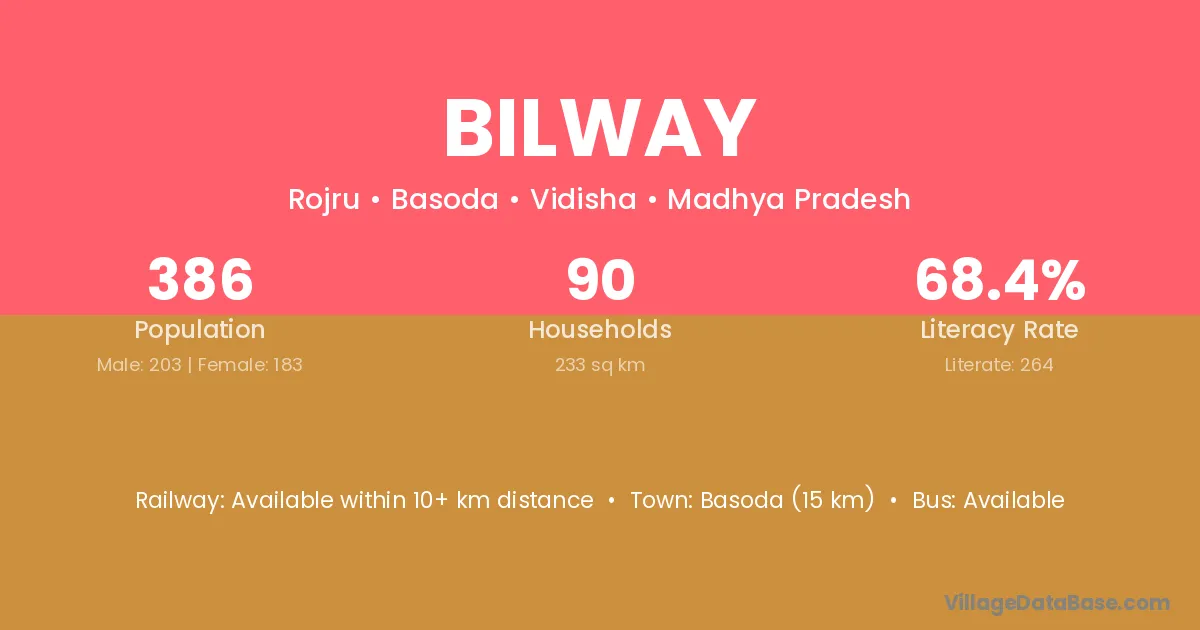 Basoda (15 km) is the nearest town to Bilway village for major economic activities and is located approximately 15 km away.